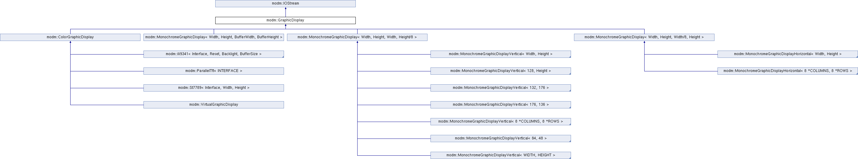 Implemented in modm::Max7219MatrixHorizontal< SPI, CS, COLUMNS, ROWS >, modm::Max7219Matrix< SPI, CS, COLUMNS, ROWS >, modm::St7586s< SPI, CS, RST, DC, Width, Height >, modm::ili9341< Interface, Reset, Backlight, BufferSize >, modm::ParallelTft< INTERFACE >, modm::VirtualGraphicDisplay, modm::St7565< SPI, CS, A0, Reset, Width, Height, TopView >, modm::St7565< SPI, CS, A0, Reset, 132, 32, TopView >, modm::St7565< SPI, CS, A0, Reset, 102, 64, TopView >, modm::St7565< SPI, CS, A0, Reset, 128, 64, TopView >, and modm::Nokia5110< Spi, Ce, Dc, Reset >.