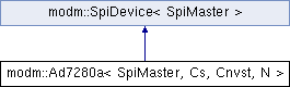 Inheritance diagram for modm::Ad7280a< SpiMaster, Cs, Cnvst, N >: