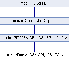 Inheritance diagram for modm::DogM163< SPI, CS, RS >: