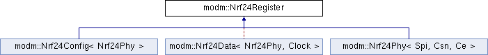 | enum | NrfRegister : uint8_t { NrfRegister::CONFIG = 0x00, NrfRegister::EN_AA = 0x01, NrfRegister::EN_RX_ADDR = 0x02, NrfRegister::SETUP_AW = 0x03, NrfRegister::SETUP_RETR = 0x04, NrfRegister::RF_CH = 0x05, NrfRegister::RF_SETUP = 0x06, NrfRegister::STATUS = 0x07, NrfRegister::OBSERVE_TX = 0x08, NrfRegister::RPD = 0x09, NrfRegister::RX_ADDR_P0 = 0x0a, NrfRegister::RX_ADDR_P1 = 0x0b, NrfRegister::RX_ADDR_P2 = 0x0c, NrfRegister::RX_ADDR_P3 = 0x0d, NrfRegister::RX_ADDR_P4 = 0x0e, NrfRegister::RX_ADDR_P5 = 0x0f, NrfRegister::TX_ADDR = 0x10, NrfRegister::RX_PW_P0 = 0x11, NrfRegister::RX_PW_P1 = 0x12, NrfRegister::RX_PW_P2 = 0x13, NrfRegister::RX_PW_P3 = 0x14, NrfRegister::RX_PW_P4 = 0x15, NrfRegister::RX_PW_P5 = 0x16, NrfRegister::FIFO_STATUS = 0x17, NrfRegister::DYNPD = 0x1c, NrfRegister::FEATURE = 0x1d } |