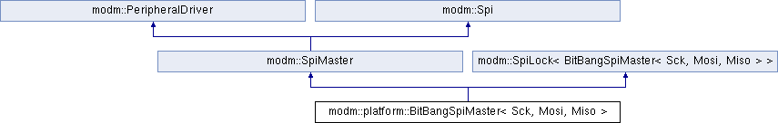 Inheritance diagram for modm::platform::BitBangSpiMaster< Sck, Mosi, Miso >: